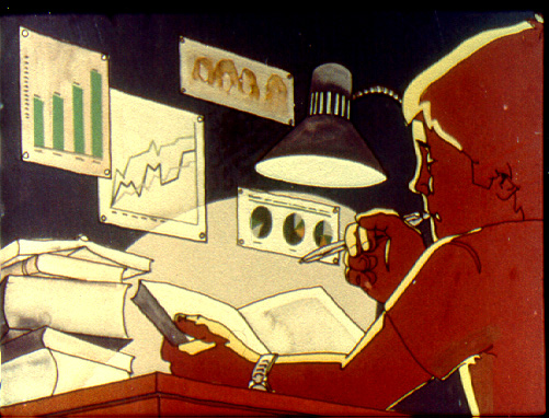The illustrations in this essay are drawn from “Az 5. ötéves terv” (The 5th Five-Year Plan), a 1977 Hungarian educational diafilm produced by MDV, Budapest, with text by Péter Szántó, supervision by Géza Balogh, and artwork by András Végvári. The complete diafilm is available in the OSA Archivum’s Virtual Dia Museum (http://diafilm.osaarchivum.org/public/?fs=1673). Five-Year Plans were the cornerstone of socialist economic organization, representing comprehensive attempts to coordinate entire national economies through centralized planning. First introduced in the Soviet Union in 1928, these plans set production targets, resource allocation, and development priorities across all sectors of the economy. Hungary, like other Eastern Bloc countries, adopted this system after World War II, with the Fifth Five-Year Plan (1976-1980) focusing on industrial modernization and technological development. These planning documents embodied the socialist belief that rational, scientific management could replace market mechanisms in organizing economic activity—precisely the same technocratic optimism that characterizes contemporary algorithmic planning approaches, albeit with digital rather than bureaucratic tools.